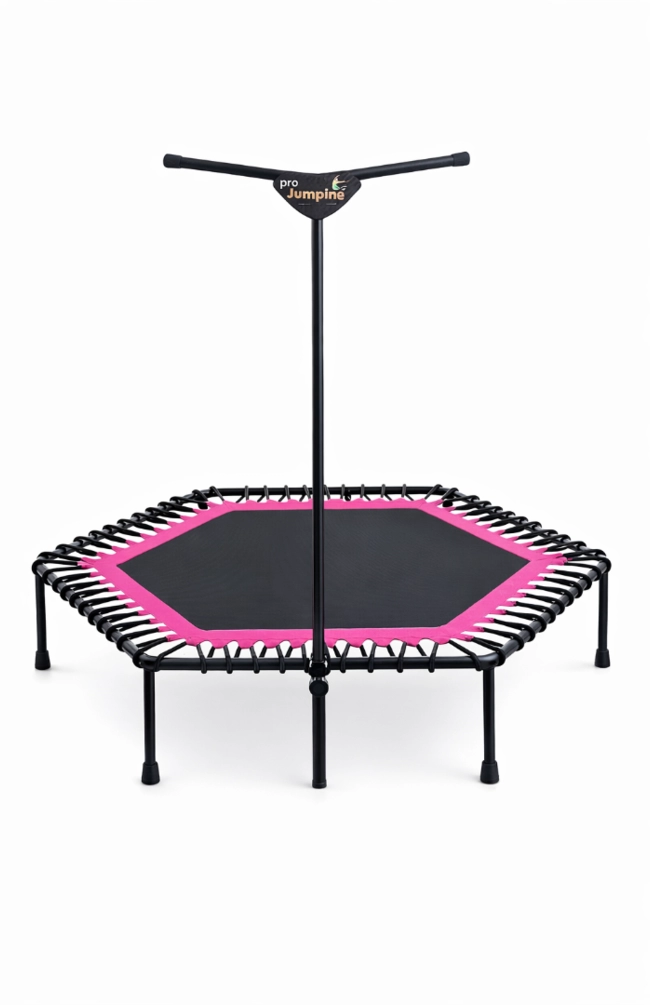 Батут оснащен регулируемой ручкой, которая легко фиксируется на любой высоте, адаптируясь под рост каждого пользователя. Это обеспечивает максимальное удобство.