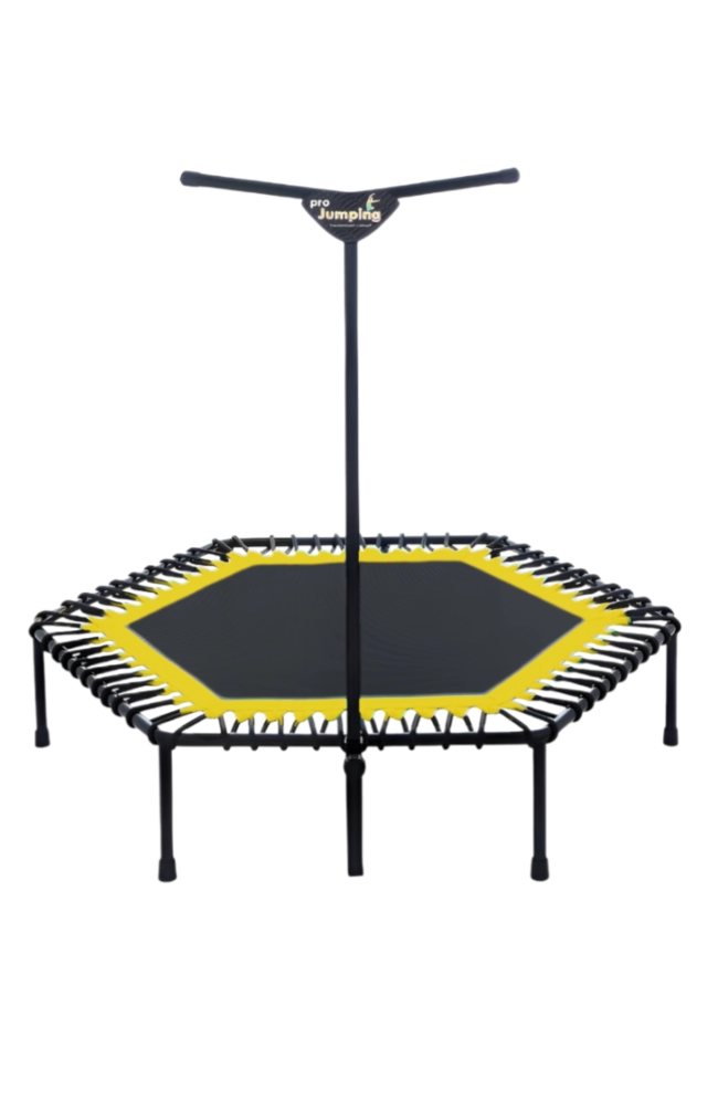 Батут ProJumping имеет шестиугольную форму, что позволяет устойчиво прыгать на полотне человеку любой весовой категории. Амортизация троса работает правильно и при прыжках на батуте человек это ощущает. Батуты ProJumping были протестированы медиками и исследование доказало, что если у человека нет противопоказаний, соответственно это помогает человеку укрепить позвоночник, сбросить лишний вес. 15 минут прыжков на батуте заменяют 3 км бега. Батут имеет так же опору в комплекте, за которую человек может держаться руками, это делает прыжки более устойчивыми. На каждый батут идут гарантии. Подробности и описание комплектующих указаны ниже: