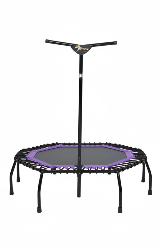 Батут оснащен регулируемой ручкой, которая легко фиксируется на любой высоте, адаптируясь под рост каждого пользователя. Это обеспечивает максимальное удобство.
